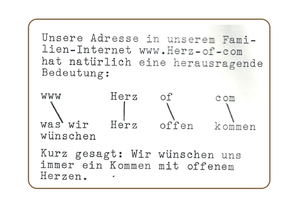 Unsere Adresse in unserem Familien-Internet www.herz-of-com hat natürlich eine herausragende Bedeutung:
